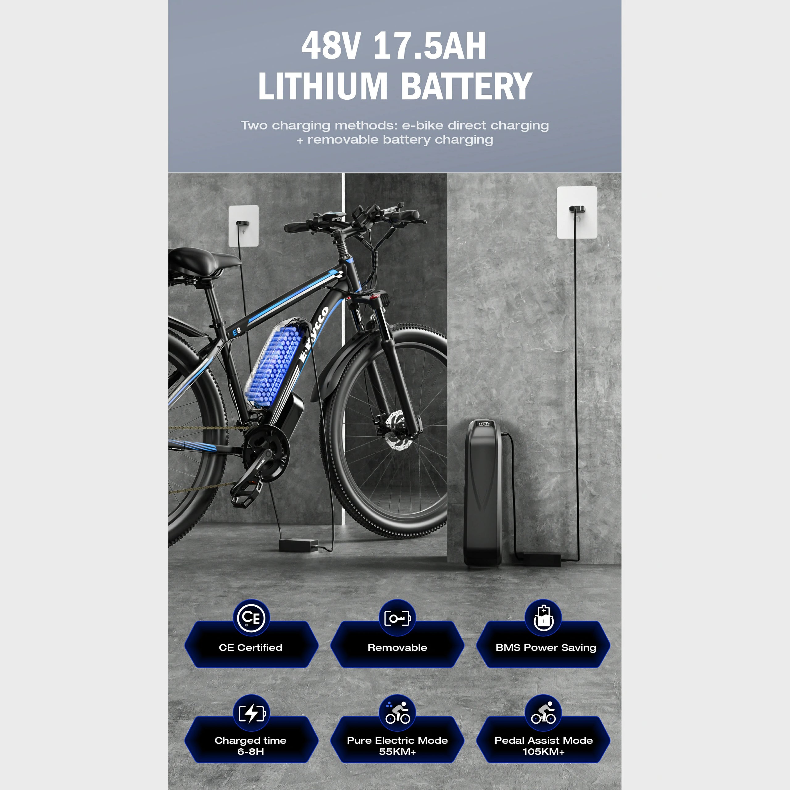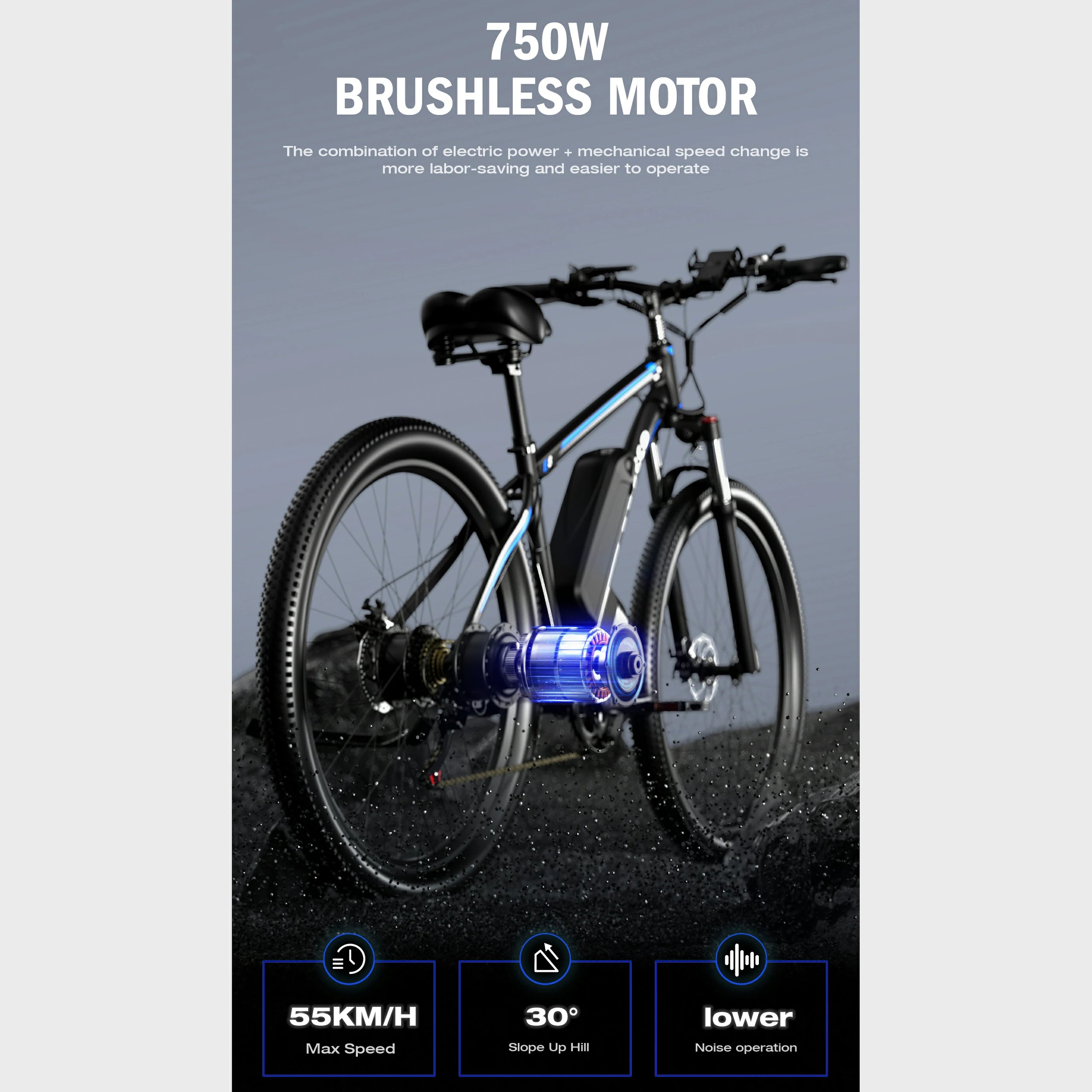 As a daily commuter covering 20km each way, this bike has transformed my life. The 750W motor eats hills for breakfast, and I rarely sweat anymore. I primarily use the 41km/h speed level on bike paths, which is the perfect balance of speed and battery conservation. The advertised 105km max assist range seems accurate; I get about 90km with moderate pedaling on mixed terrain, which is fantastic. The 29-inch wheels roll over potholes and curbs with ease, making my city ride surprisingly smooth for a hardtail. The mechanical brakes are simple but effective after a proper bedding-in period. My only gripe is the charging time; 6-7 hours means I have to remember to plug it in right when I get home. Overall, an incredible machine that has made my car obsolete for 90% of my trips.