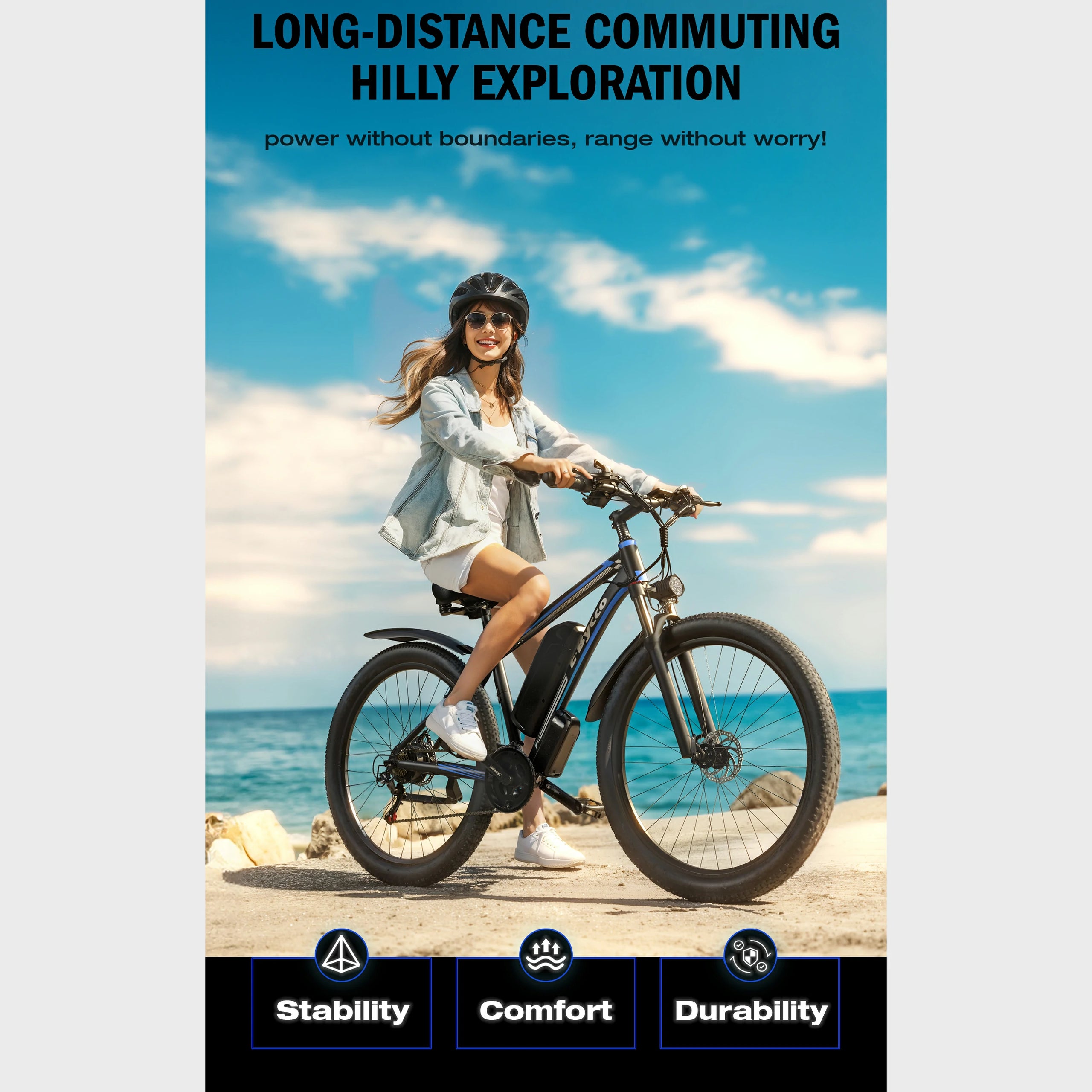 This bike has completely reshaped my daily commute. The 750W rear hub motor provides an effortless push that makes my 18km journey feel like a leisurely stroll, even on the moderate hills along my route. I primarily ride on the 34km/h assist setting, which perfectly balances speed with battery efficiency. I’ve been consistently getting around 85km of range with mixed pedaling, which far exceeds my daily needs and alleviates any range anxiety. The 29-inch wheels are a game-changer for stability and rolling over urban obstacles like potholes and curbs. While the hardtail suspension is firm, it’s perfectly acceptable for paved bike paths and roads. The mechanical brakes were a bit soft out of the box but tightened up nicely after a quick adjustment. The IP67 rating is a true lifesaver, as I’ve been caught in sudden rainstorms without a hint of electrical issue. At 25kg, it’s substantial, but once the motor kicks in, the weight vanishes. A fantastic, reliable machine that makes every ride a joy.