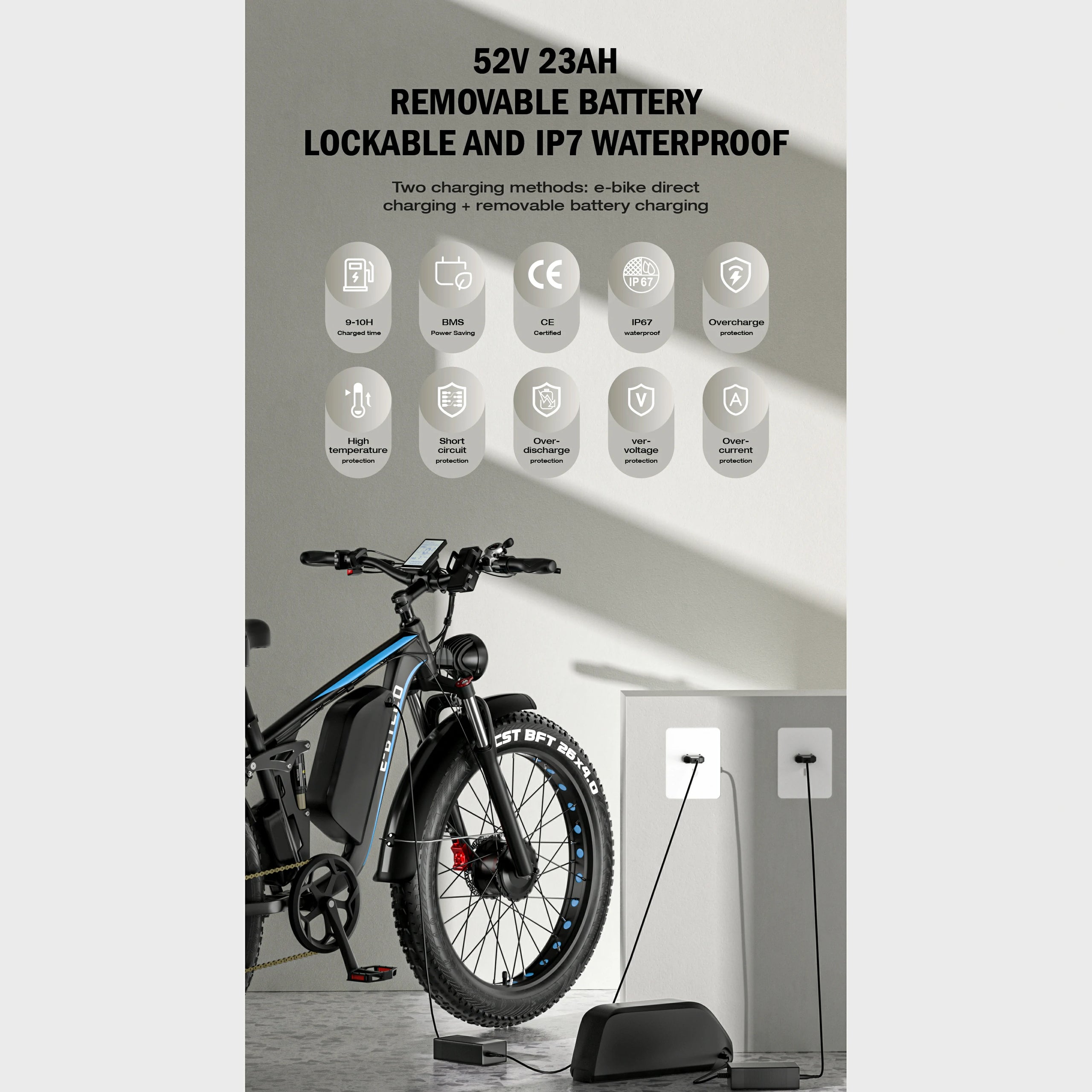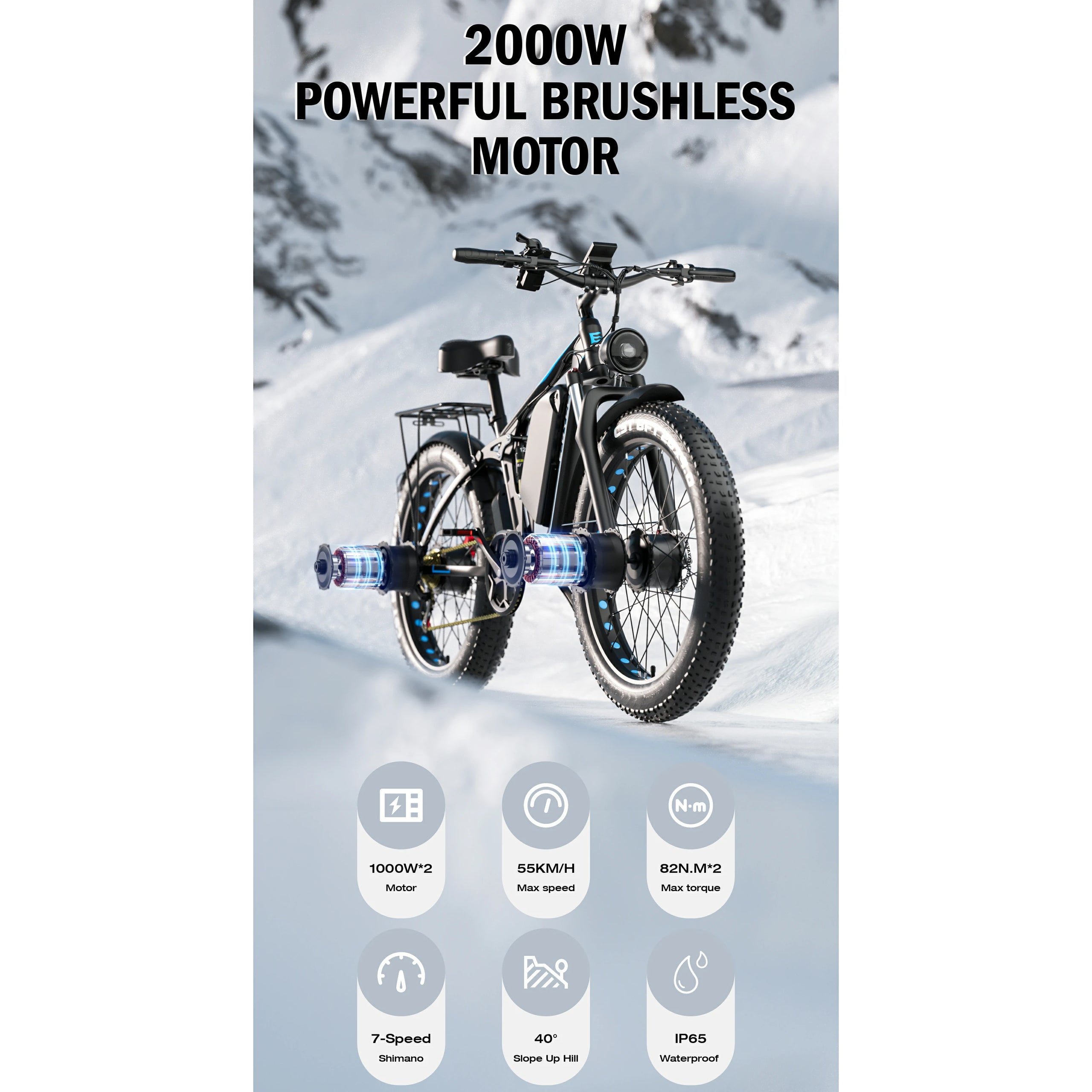 1000W*2 Motor | 52V 23AH Battery | 55km/h Speed | 50-80km Range