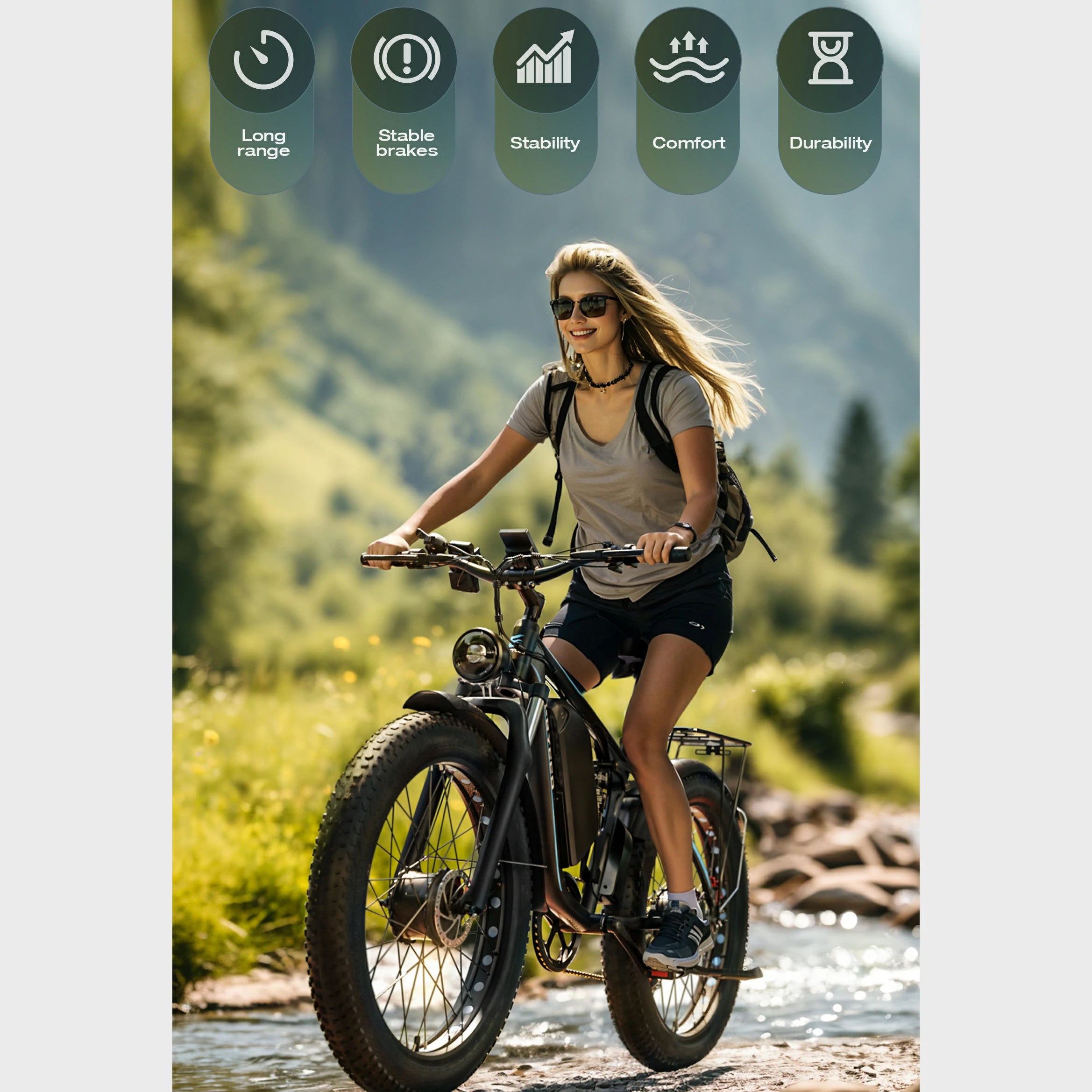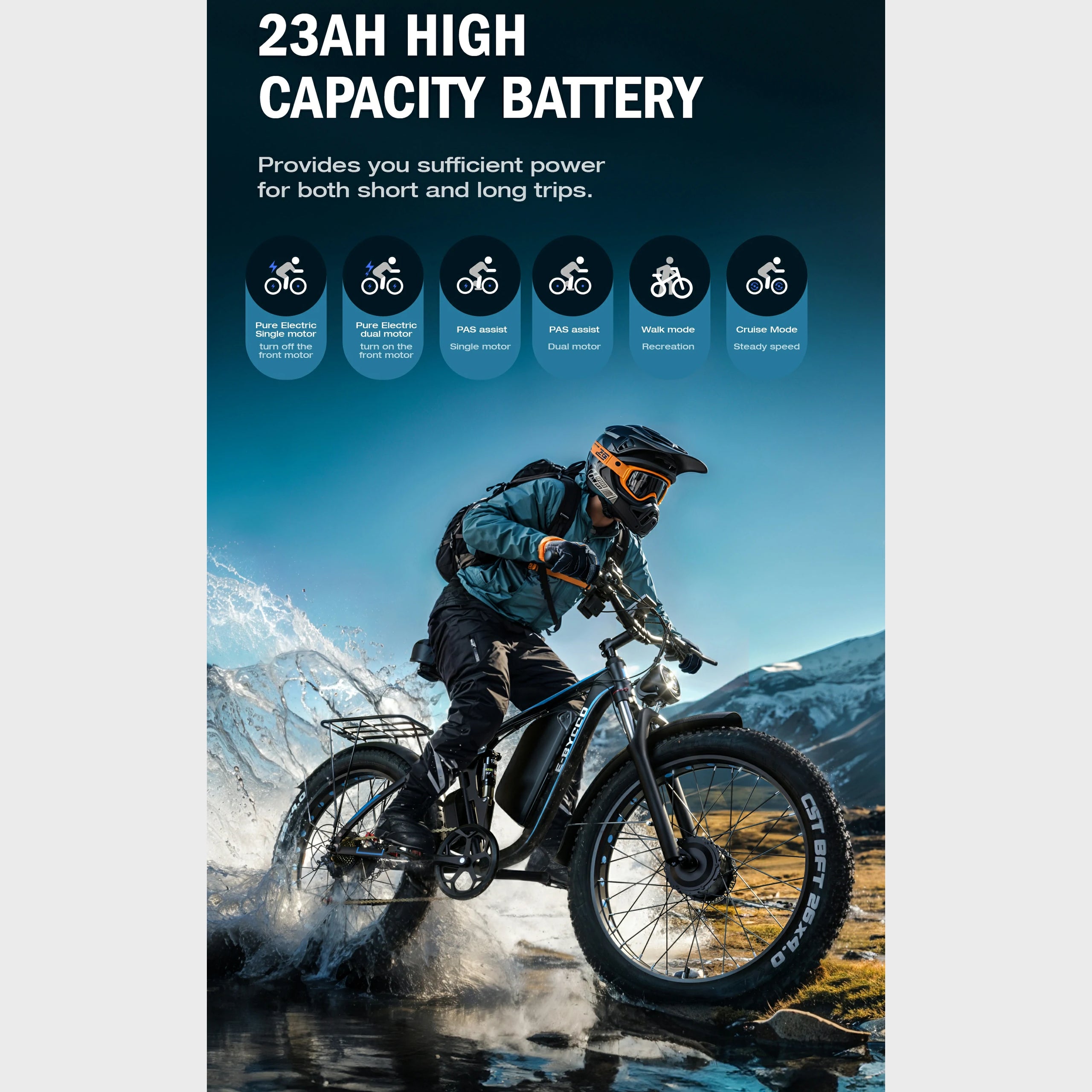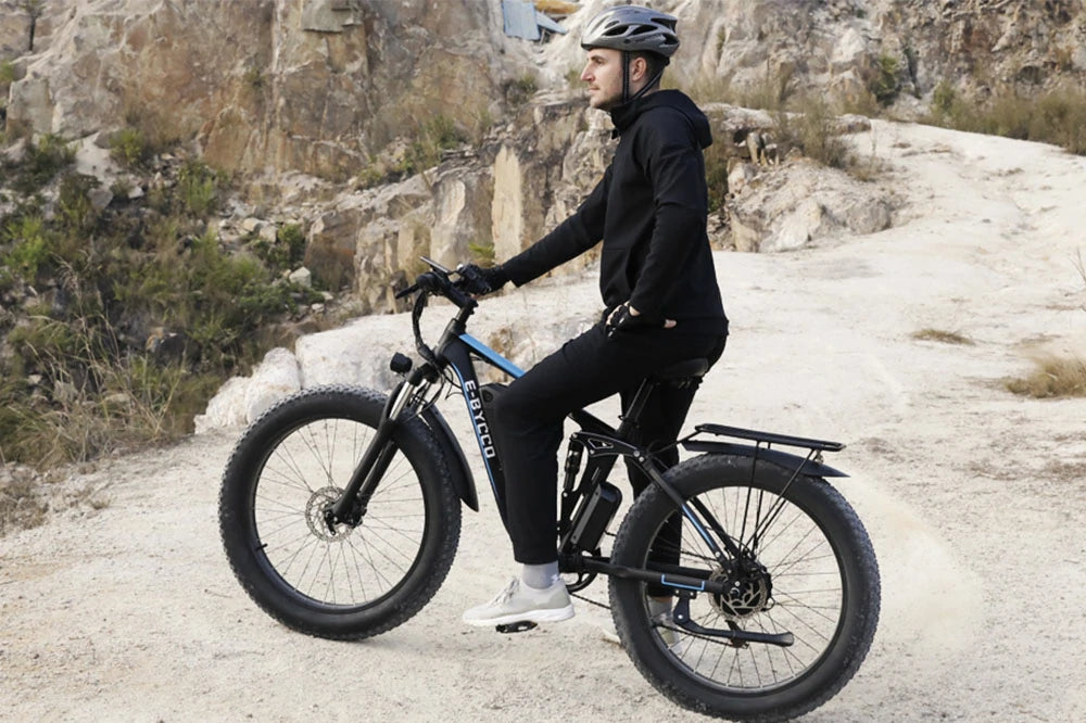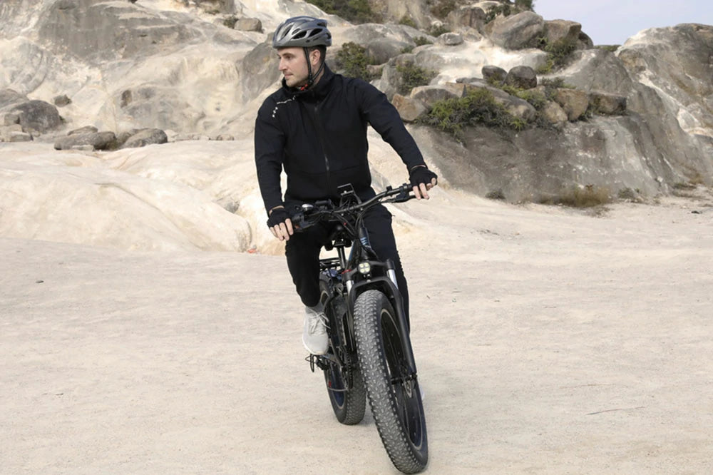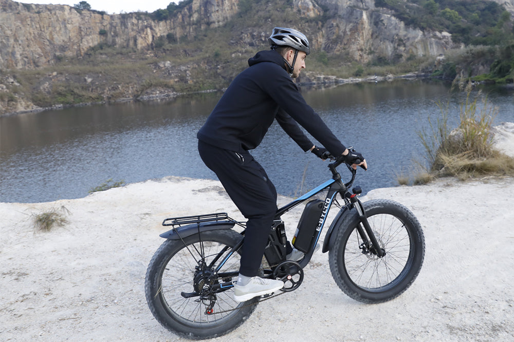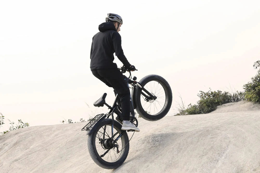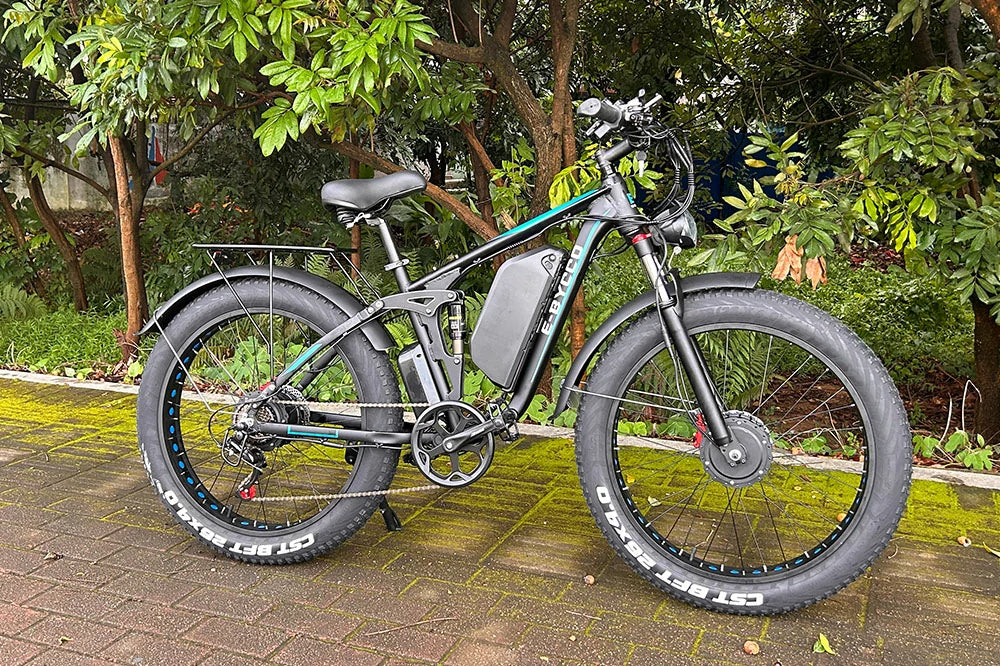 Hills are no longer a struggle with this bike. The dual motors provide impressive torque, and I can maintain 25km/h on steep inclines. The battery range is slightly lower in hilly areas (around 55km), but still adequate. The fat tires offer great grip, and the hydraulic brakes are dependable. The bike is weighty but feels secure. Perfect for hilly commutes and recreational rides.